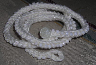 Creamy cotton yarn, 6/0 beads and a little flower button...